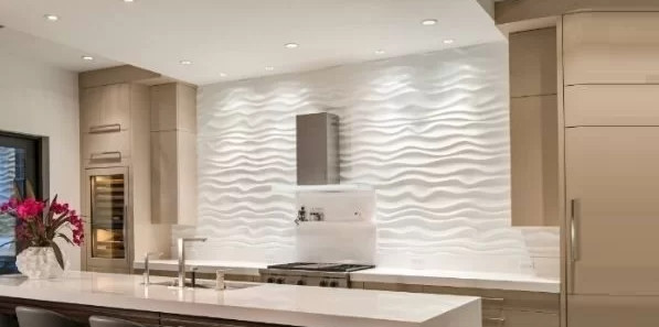 Gạch ốp tường 3D là minh chứng cho vẻ đẹp mang giá trị mỹ thuật tinh tế. Bề mặt gạch được điêu khắc theo gợn sóng 3 chiều tạo nên hiệu ứng sáng tối vô cùng đặc sắc. Đối với những không gian sống đòi hỏi cao sự sang trọng, đẳng cấp thì loại gạch ốp tường bếp 3D này chính là sự lựa chọn lý tưởng nhất. Đây cũng là loại gạch ốp bếp đẹp đang rất được săn đón.