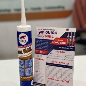 Keo Quick Nail còn được gọi bằng những tên gọi như là keo bò húc Quick Nail, keo bò húc, keo đa năng bò húc,… Keo Quick Nail được làm từ hợp chất Hybrid Polymer, có khả năng bám dính mạnh mẽ và linh hoạt trên hầu hết các bề mặt vật liệu dùng để xử lý vết nứt cũng như chống dột hiệu quả trong thi công xây dựng. Với công nghệ sản xuất theo day chuyền công nghệ Nhật Bản và sản xuát tại Thái Lan, chính vì thế mà chất lượng của Quick Nail không thể bàn cãi. Với nhiều ưu điểm vượt trội, keo Quick Nail là sản phẩm không thể thiếu trong các công trình xây dựng ngoài trời hoặc những khu vực thường xuyên chịu tác động và rung động mạnh.